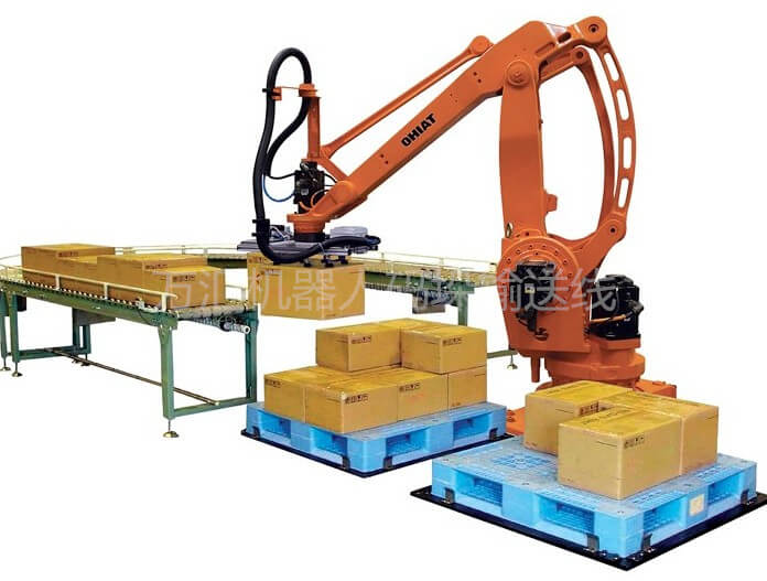 機器人碼垛系統是一種智能高效的碼垛機。隨著工業芯片技術上的發(fā)展及AI技術的進步,機器人的智能性已經代替人類的初步勞動,機器人碼垛機構靈活輕便,是工廠的明智選擇